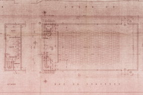 Commune de Luzy. Nièvre. Cinéma. Plan de nivellement. Dessin (tirage à l'ammoniaque), s.n. S.d. [1954]. 45 x 69,5 cm, sans échelle.Lieu de conservation : Archives municipales, Luzy -