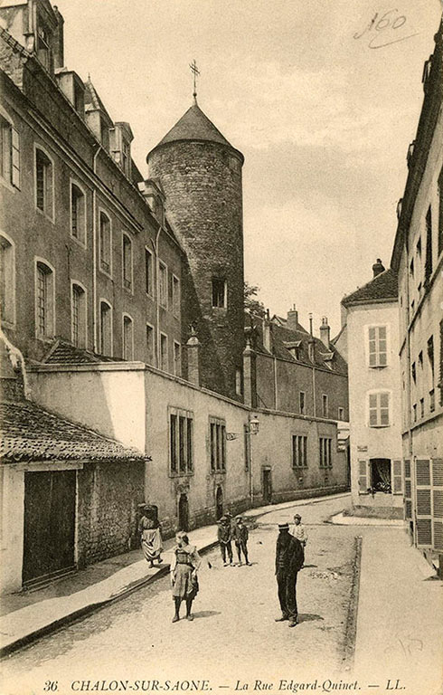 36.- Chalon sur Saône.- La rue Edgar Quintet. Carte postale. S.d. [1ère moitié 20e siècle]. LL édition.Lieu de conservation : Archives municipales, Chalon-sur-Saône - Cote du document : 30num166 -