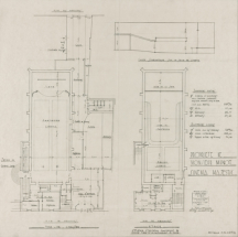 SERTEC Cinéma ‘Le Majestic’ rue de Nemours à Nevers. Construction d’une cabine de projection, transformation et aménagement des accès. Dessin (tirage), par l'architecte de la ville R. Rouvet. Nevers décembre 1947. 1/50.- Plan au niveau du parterre. 67,5 x 103,5 cm.- Plan au niveau du balcon et de la cabine. 58,5 x 88,5 cm, sans éch.- Coupe longitudinale. 56,5 x 87 cm.Lieu de conservation : Archives municipales, Nevers - Cote du document : 129 W 27 -