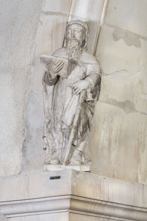 La statuette est posée sur la corniche du pilier à l'angle nord-ouest de la nef et du transept.