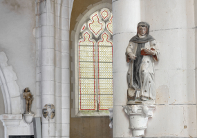 La statue est posée sur une console (chapiteau remployé), contre le pilier nord-est du chœur.